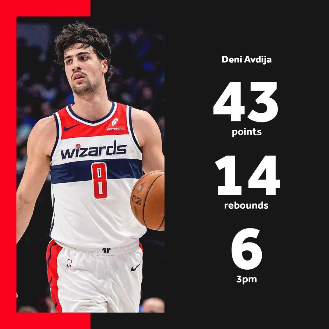 41分对于很多球星都不少见,但对于阿夫迪亚可太罕见了,这仅仅是他生涯第二次拿下40+,上一次还是在两年前,当时他还在奇才效力,输给鹈鹕的比赛里,阿夫迪亚投篮24中13、三分10中6、罚球13中11,空砍43分15篮板3助攻。